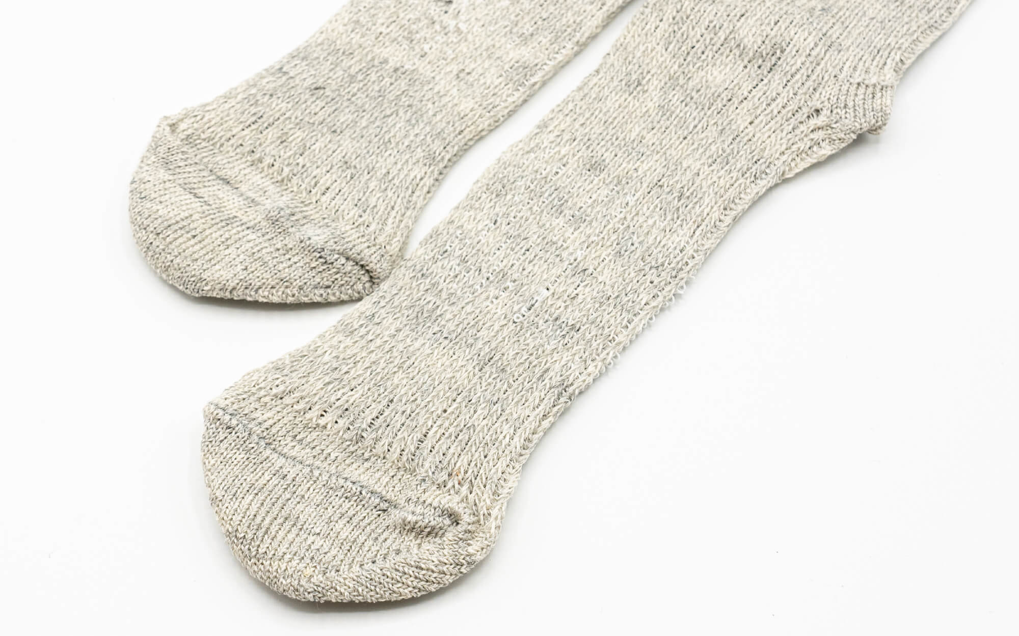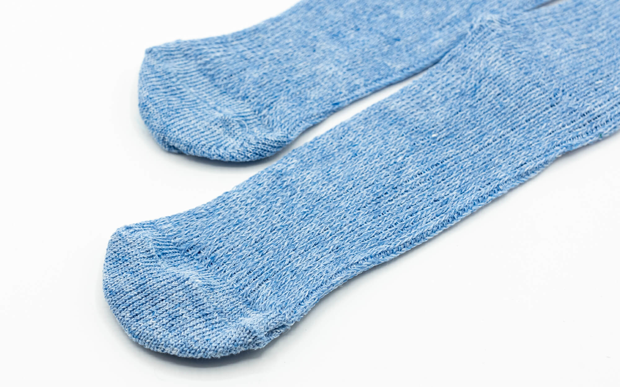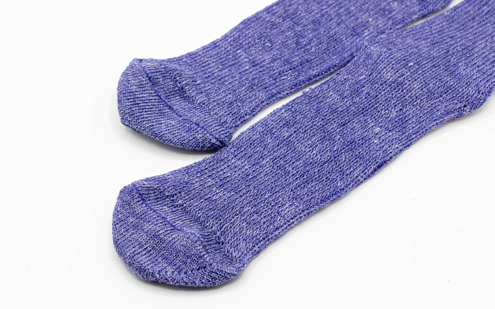 上質な麻のシャリ感と通気性も魅力ですが、リブ編みによって肌触りを柔らかく気持ちよく履いていただけます。