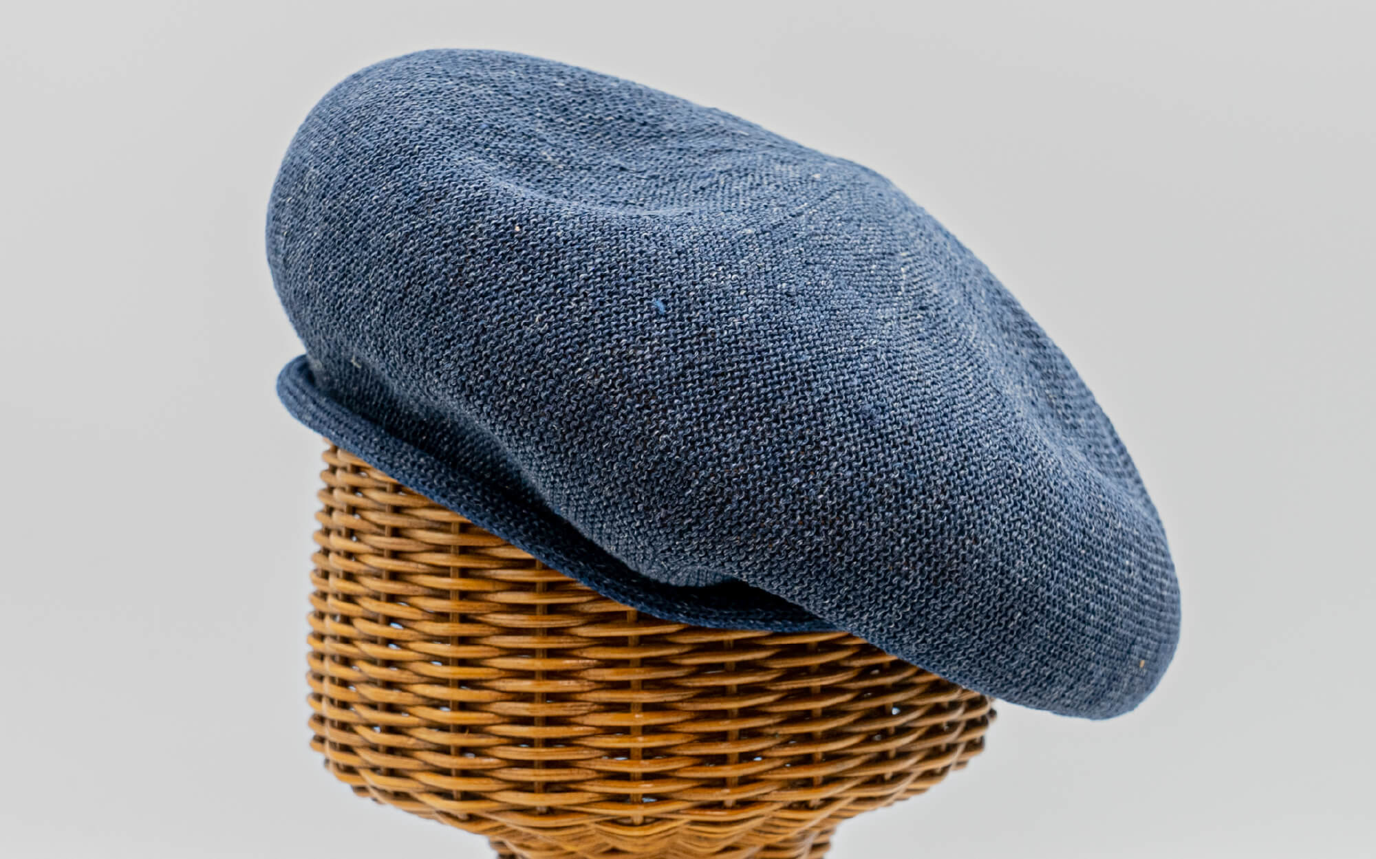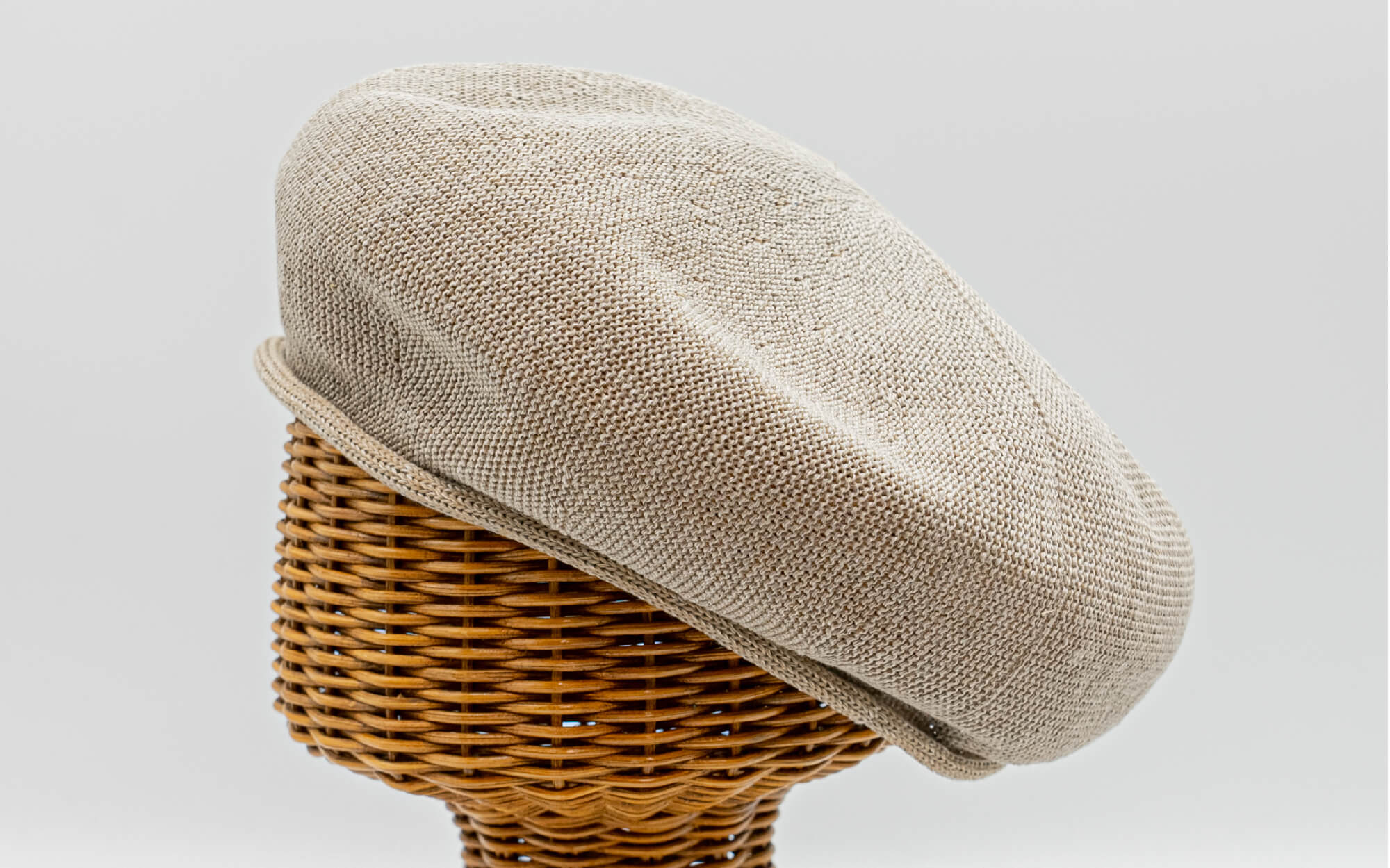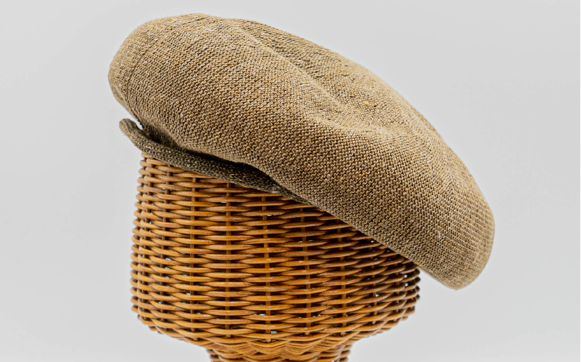外ロールベレーは内側に調節ベルトが付いておりませんが、天然素材の麻でお作りしておりますので頭の形にフィットしつつズレることがありません。天竺編みでシンプルに、外側のロールがアクセント。リンキング加工を施し、つなぎ目がない美しいベレーに仕上がりました。