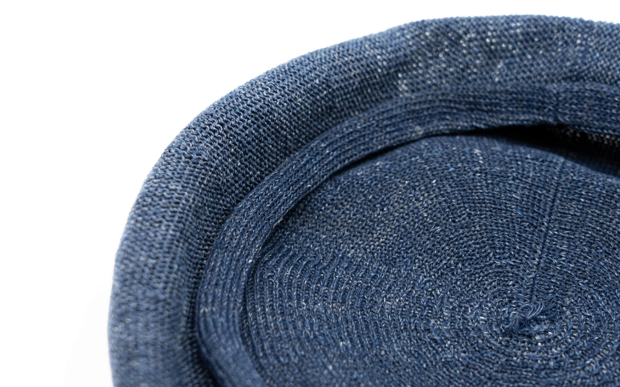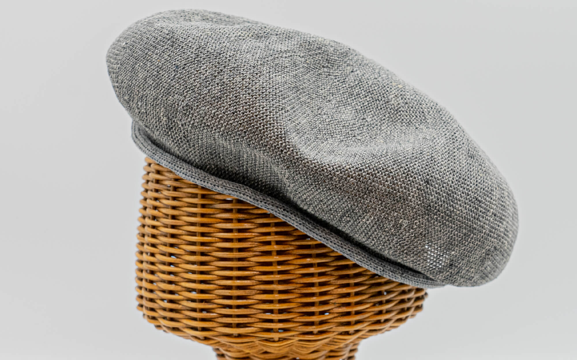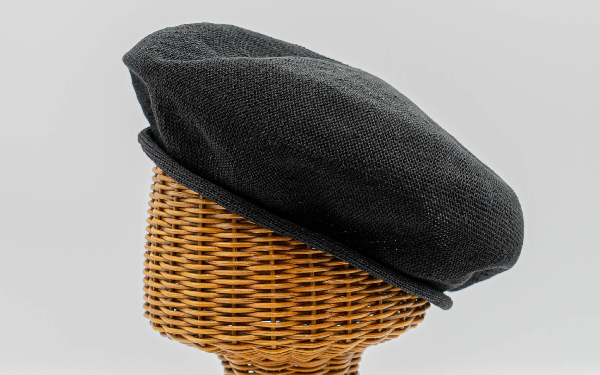 外ロールベレーは内側に調節ベルトが付いておりませんが、天然素材の麻でお作りしておりますので頭の形にフィットしつつズレることがありません。天竺編みでシンプルに、外側のロールがアクセント。リンキング加工を施し、つなぎ目がない美しいベレーに仕上がりました。
