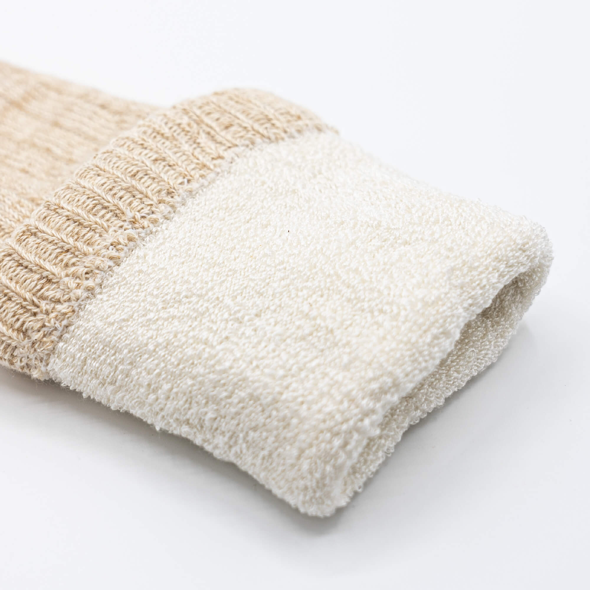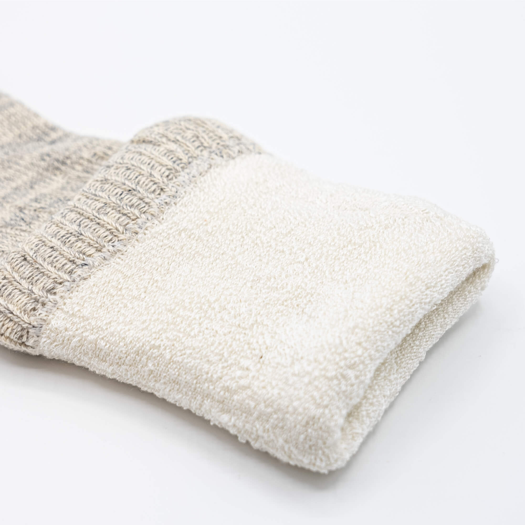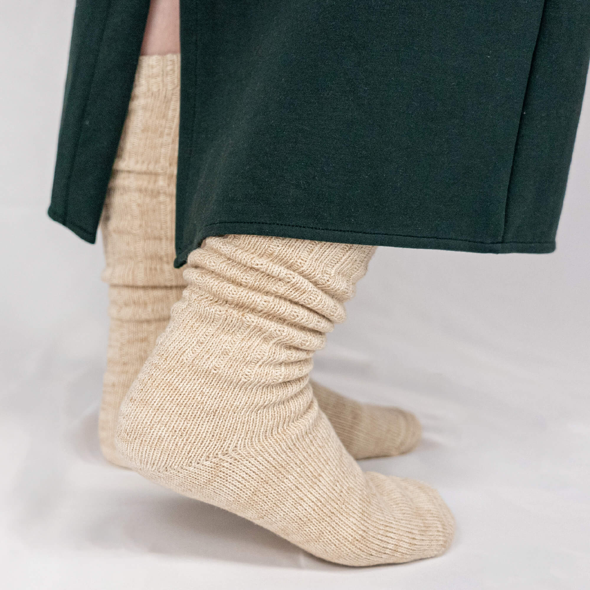 かかとから40cmのロングサイズででリブ編みを施しています。